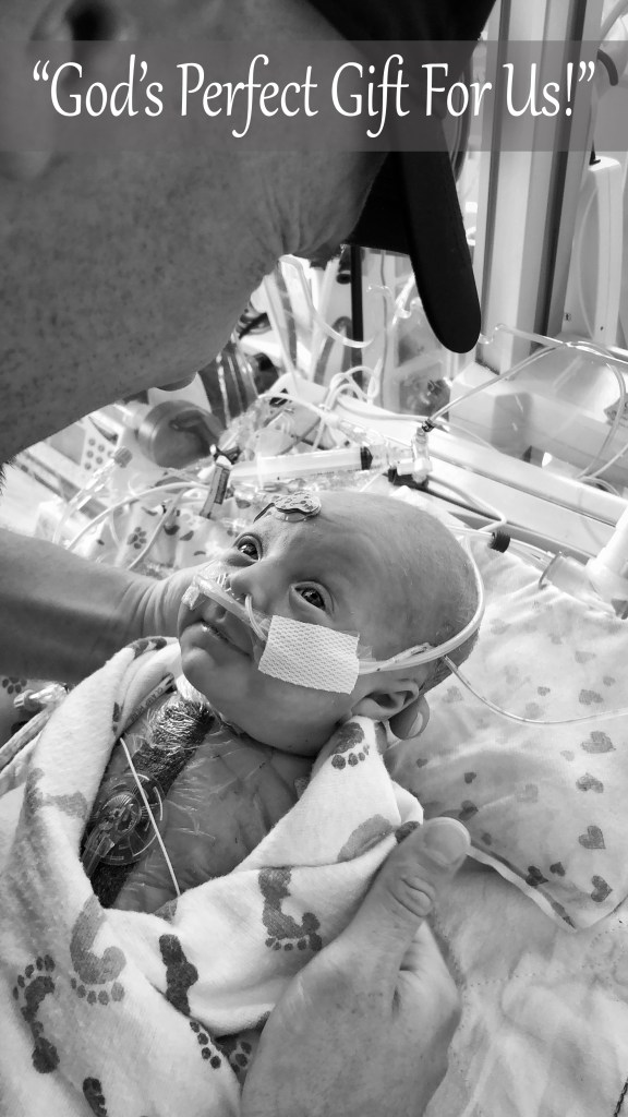 I’ve also realized that there are a few things about this nightmare that I do NOT want you to forget. I never want you to forget that you are so very strong, Theodore. I watch you fight for breath; I watch your handsome blue eyes in determined concentration as you coordinate your tiny muscles to push your diaphragm down to draw in air. I then witness the relief in your face as the air floods in, and I see the exhaustion as you let it out. If there ever comes a time in your life when you feel weak or inadequate, I pray you remember what you were able to accomplish entirely through your own will and fortitude. I never want you to forget that you are so very courageous, Theodore. I watch as the doctors change the dressings on your surgical wounds, and you do not even flinch. I watch from afar, unable to even hold your tiny hand due to infection control, and I’m amazed when I simply see you curiously study all the machines and unfamiliar faces. Never forget the Grace of God that is provided to you through every trial you overcome. Never forget that the most dangerous place to be is between a ‘mother bear’ and her ‘cub’… YOU are my ‘Teddy Bear’ cub, and my sole purpose will always be to fiercely love and protect you with everything in me. You are ‘Theodore’ – my precious reminder that “God’s Perfect Gift For Us” is not always what it seems, but always better than imagined.